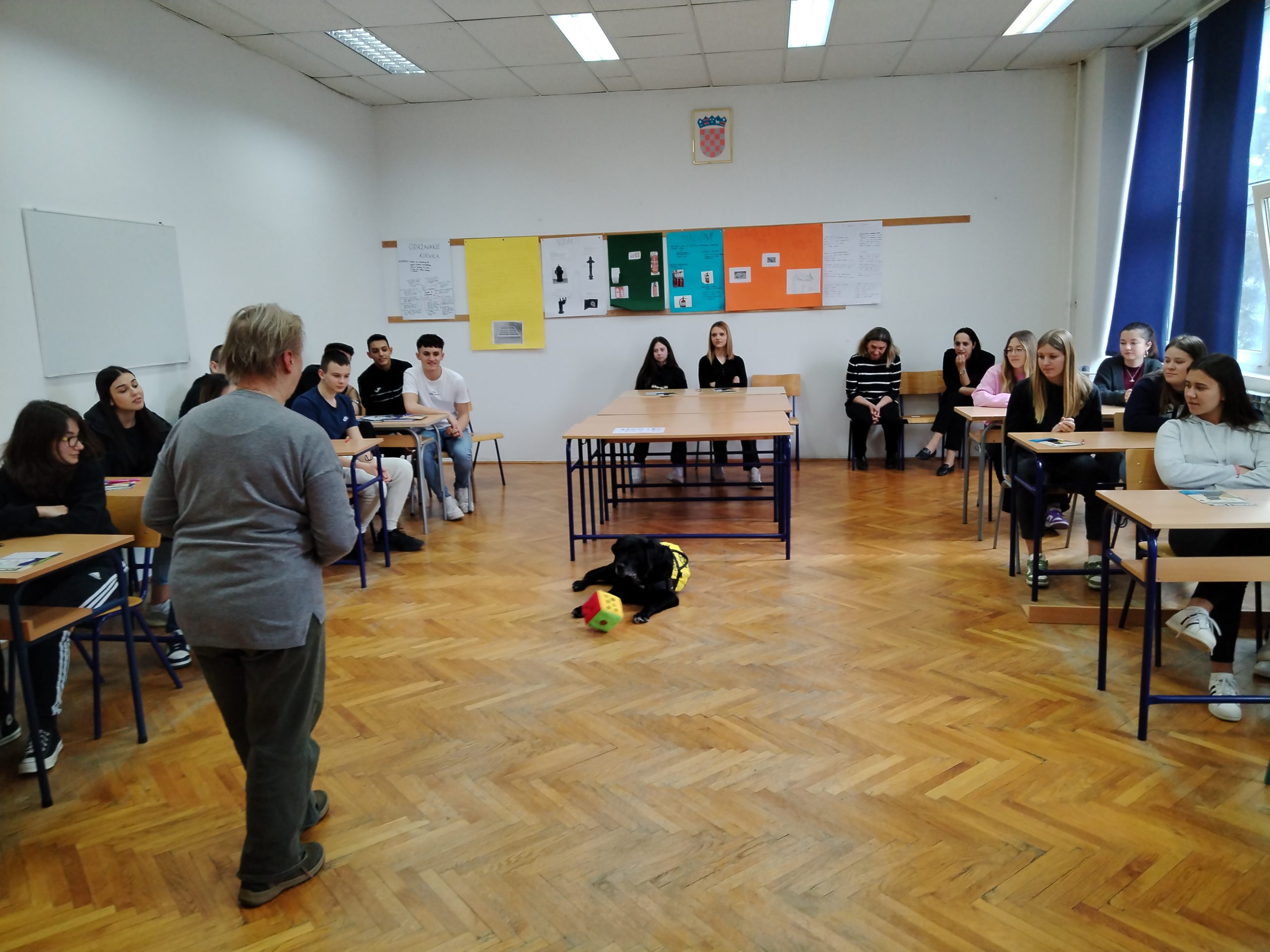 Održali smo ukupno šest radionica za učenike Strukovne škole (medicinski tehničari i turistički radnici) i Gimnazije u Gospiću pod nazivom „Pomaknimo granice prihvaćanja” tijekom kojih su učenici naučili kako pristupiti i komunicirati pri susretu sa slijepom osobom, kako se slijepe osobe kreću i koja pomagala koriste. Također su imali priliku praktično doživjeti kretanje uz psa vodiča.
